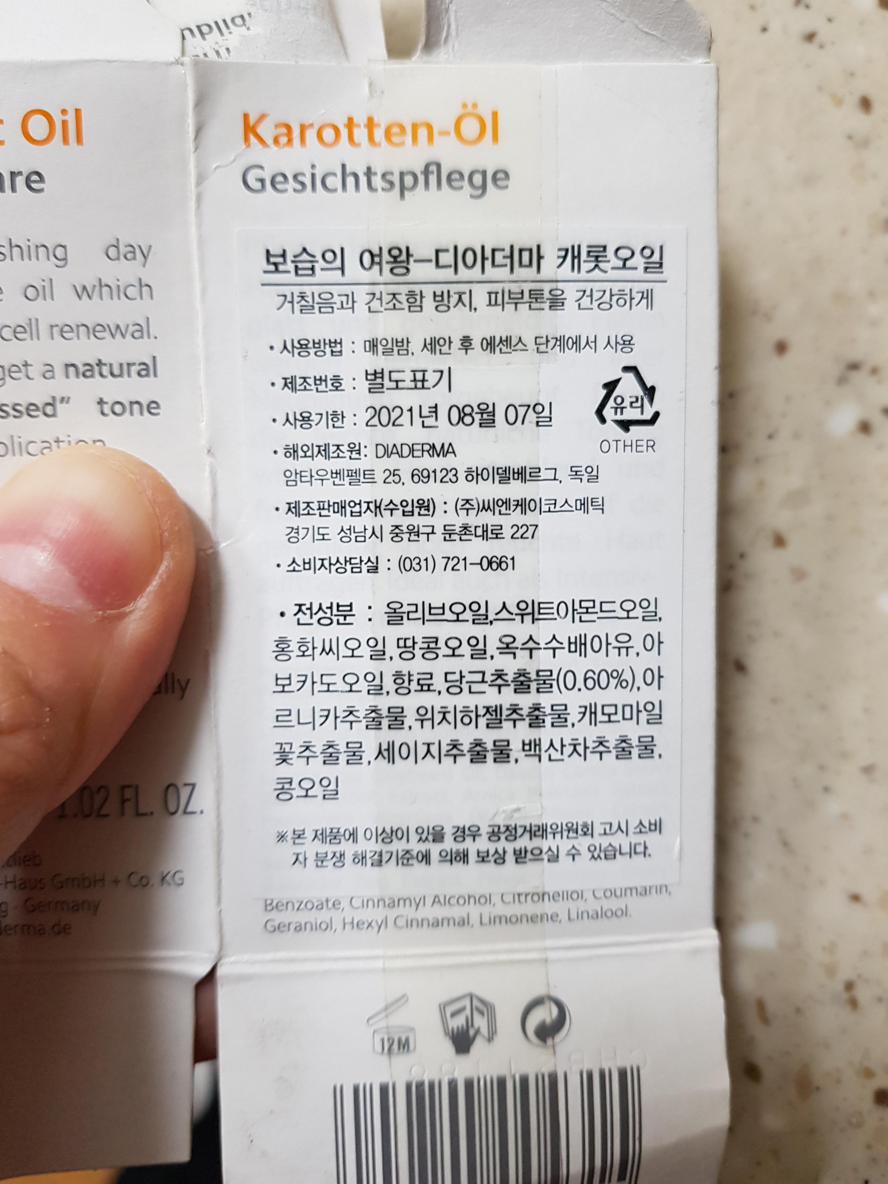 전성분을 보니 당근추출물은 얼마 안되고(향료보다도 적은...;;) 나머지 오일들이 괜찮은 성분들로 구성되어 있다.