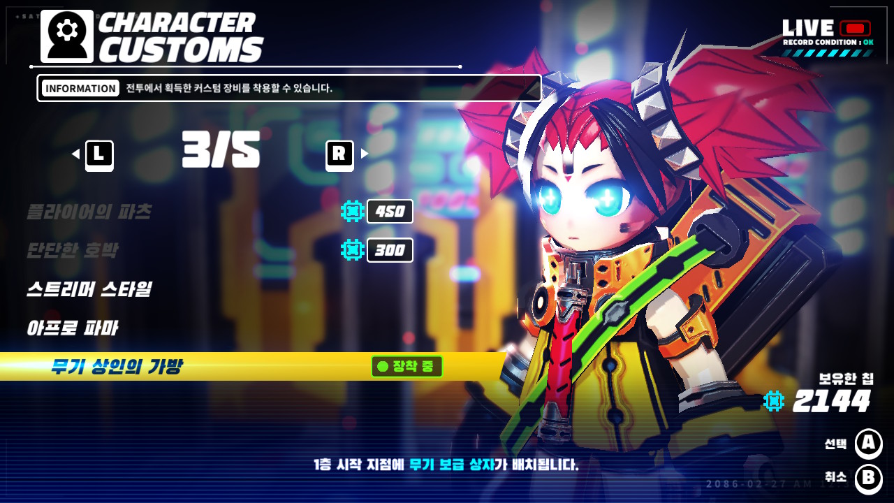 무기상인의 가방 커스텀이 가장 플레이하기 좋았고